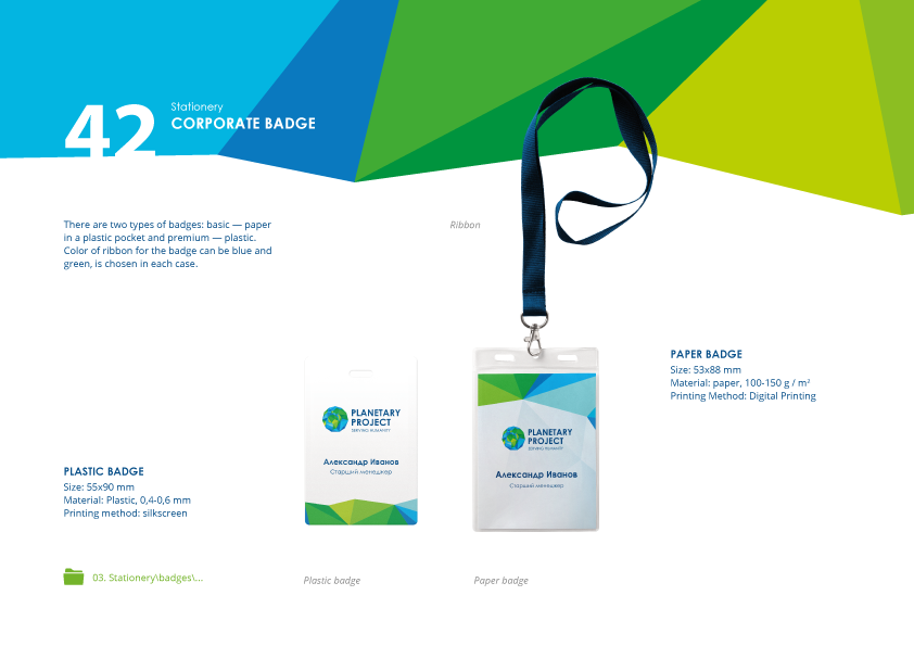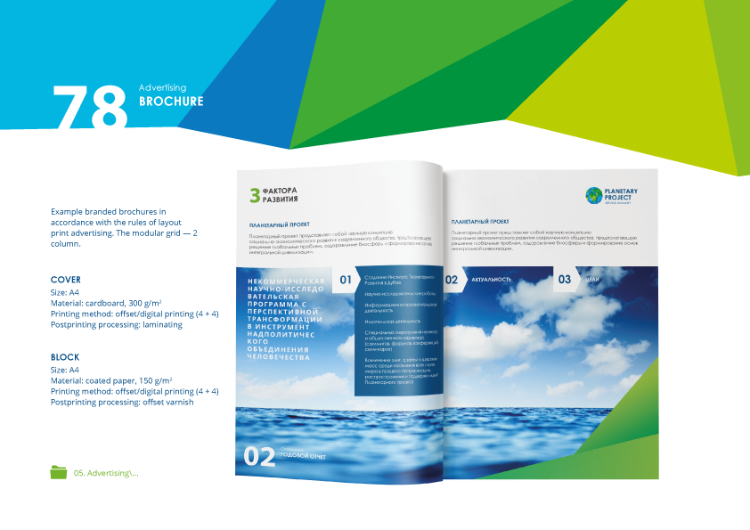 Non-symmetrical shapes and bright color scheme inspired by nature & environment was used as the corporate identity elements.
