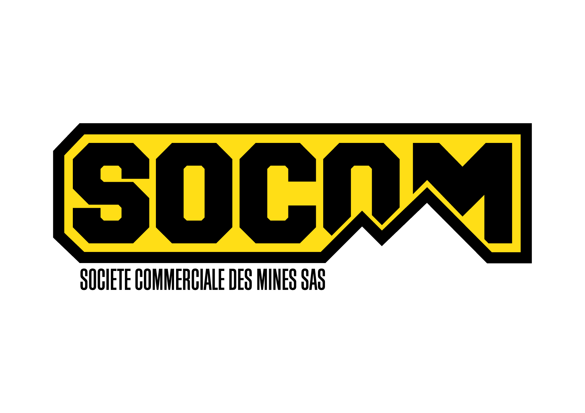 It came to be a solid industrial logo with the short name of the company as the main element, which is partially overlapped by a silhouette of two mountains. These mountains highlight the main activities of the company, which mostly involve supply of heavy equipment, its spare parts and components.