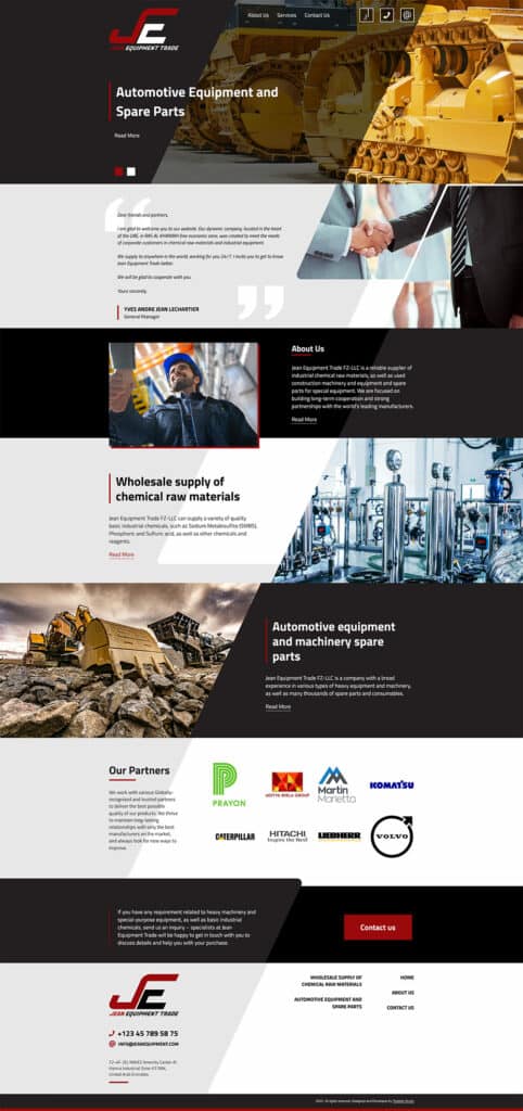 After creating their logo, we also developed a coroporate website for Jean Equipment Trade FZ-LLC, an industrial supplier of various equipment and raw materials.